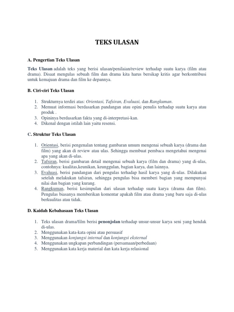 Contoh Teks Ulasan Beserta Struktur Dan Kaidah Kebahasaannya - Berbagai Struktur