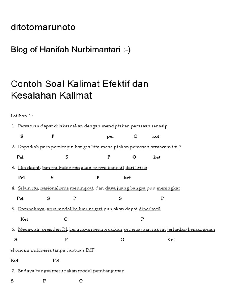 Contoh Soal Kalimat Efektif Dan Kesalahan Kalimat _ Ditotomarunoto