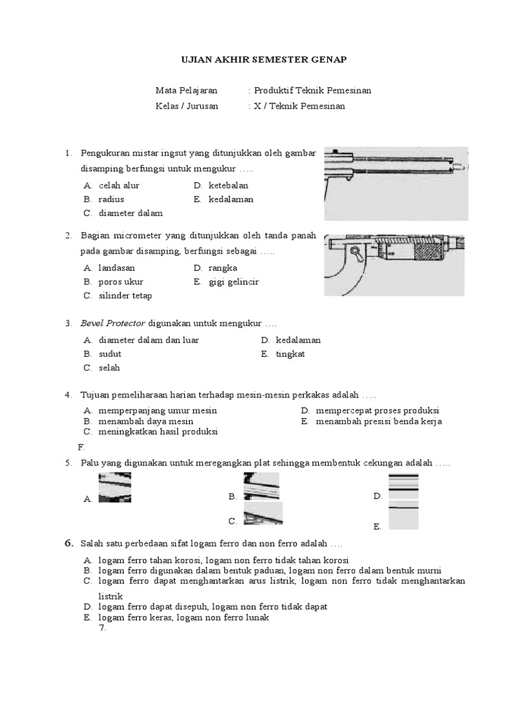 Soal Alat Ukur Mekanik Presisi TPM X - [DOC Document]