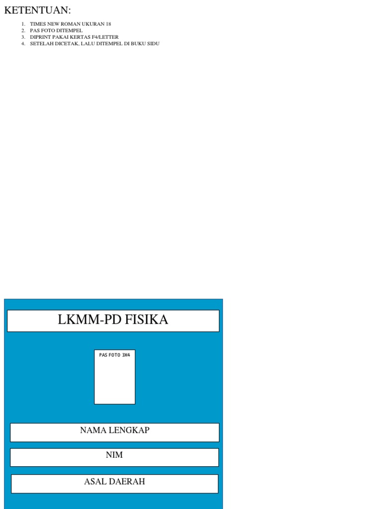 1. Times New Roman Ukuran 18 2. Pas Foto Ditempel 3. Diprint Pakai Kertas F4/Letter 4. Setelah Dicetak, Lalu Ditempel Di Buku Sidu