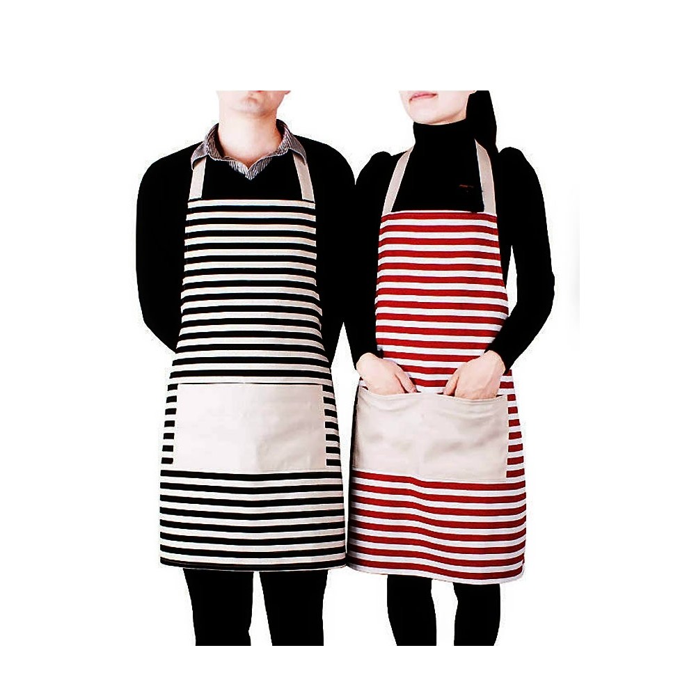 Couple Kitchen Cooking Canvas Cross Stripe Pattern Waterproof Apron with Pocket | Shopee Singapore