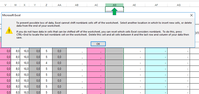 Tidak bisa Menambahkan Kolom Baru di Excel