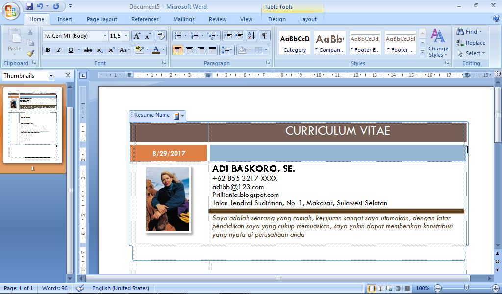 Cara membuat curriculum vitae (CV) menarik dengan Microsoft Word - andik.my.id
