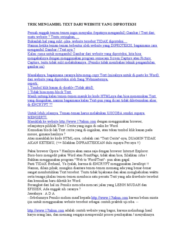 TRIK MENGAMBIL TEXT DARI WEBSITE YANG DIPROTEKSI