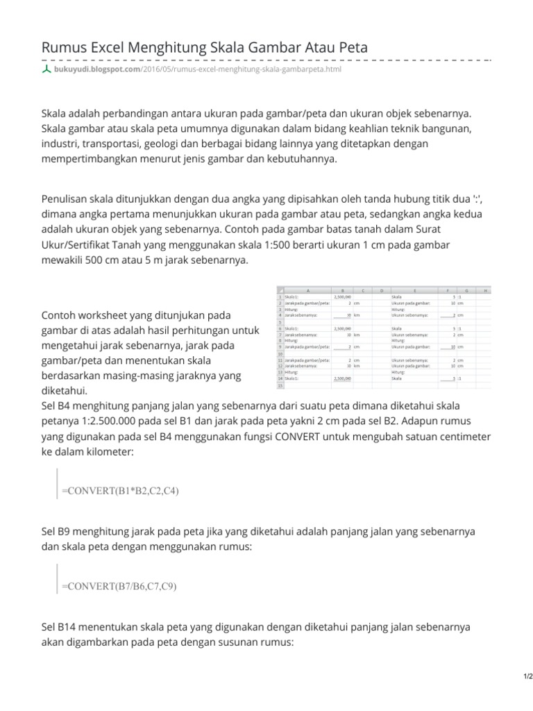 Rumus Excel Menghitung Skala Gambar Atau Peta: =CONVERT(B1*B2,C2,C4)