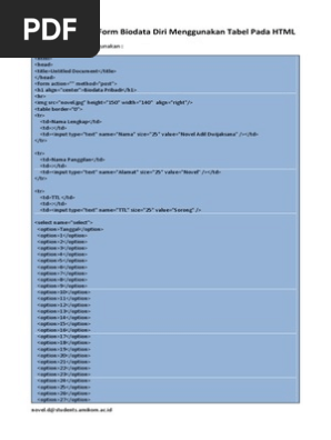 Cara Membuat Form Biodata Diri Menggunakan Tabel Pada HTML