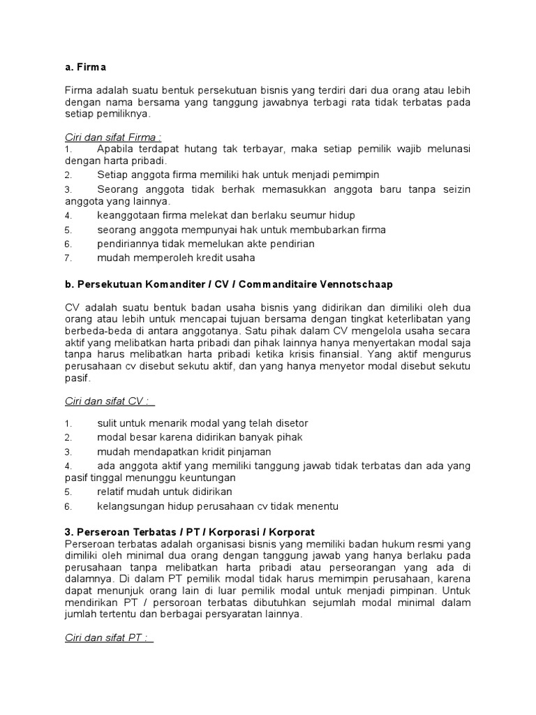 DOC) PERBEDAAN PT, PP, CV, dan Firma | Nanda Dwi Haryanto - Academia.edu