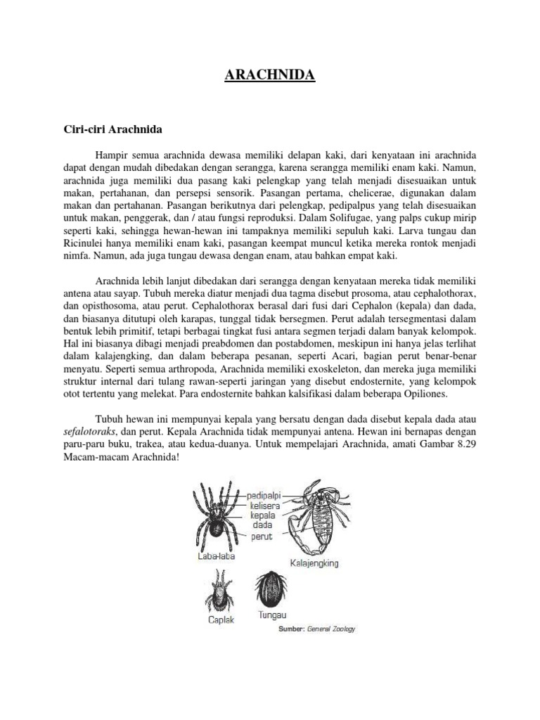 Struktur Tubuh Arachnida | Biologi | Sridianti.com