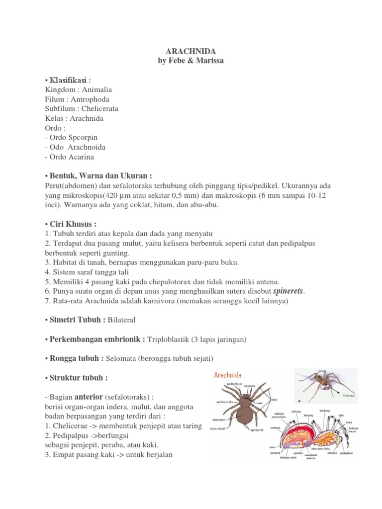 Karakteristik dan Klasifikasi Arachnida • Tentorku