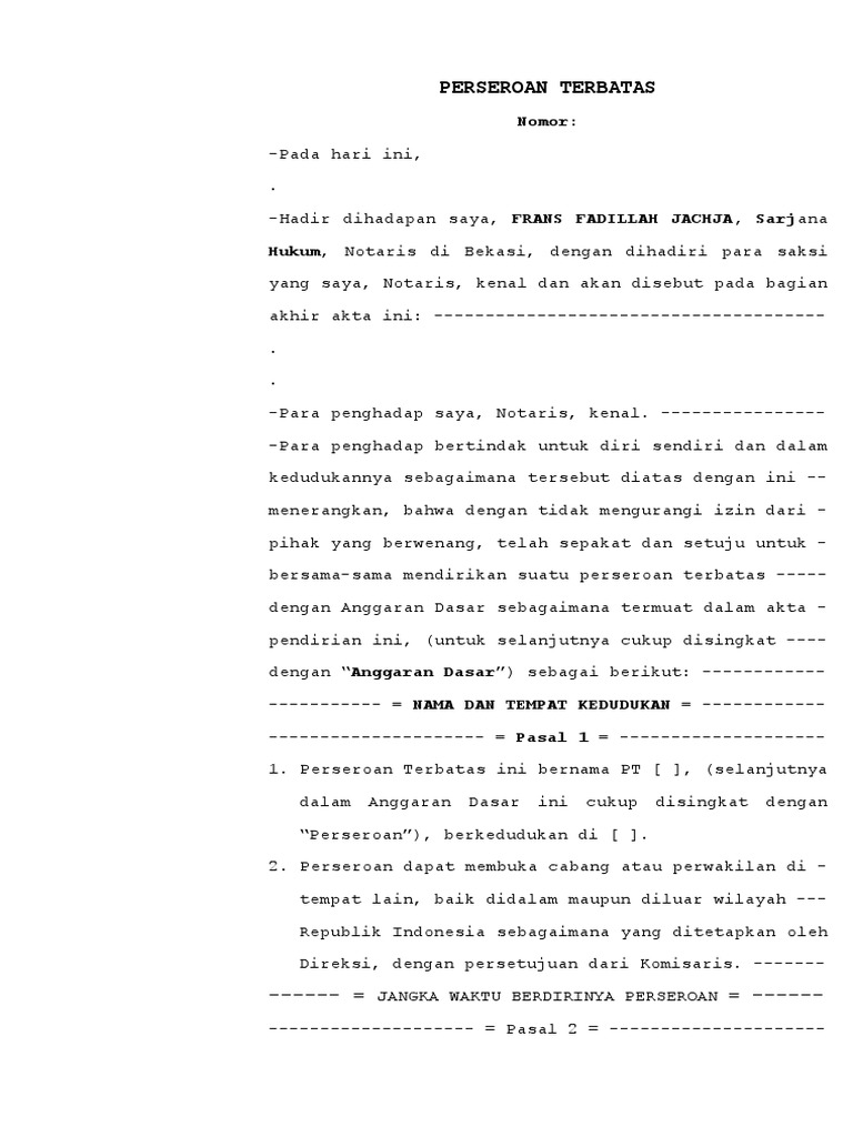 Contoh Akta Pendirian Cv Doc