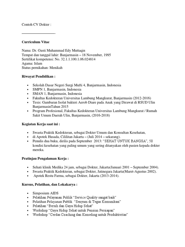 Contoh Daftar Riwayat Hidup Dokter - Contoh Agece