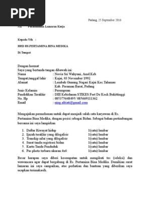 Permohonan Lamaran Kerja Rs.pertamina Bina Medika