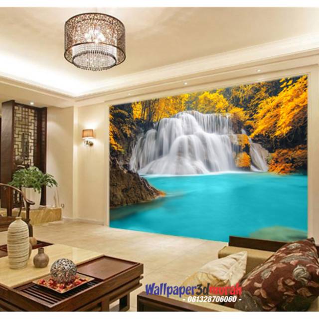 LARIS DEKORASI WALLPAPER DINDING CUSTOM GAMBAR PEMANDANGAN ALAM 3D - AIR TERJUN 03 | Shopee Indonesia