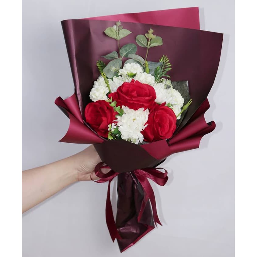 Buket Bunga Mawar Flanel Kado Ultah Wisuda Wedding Anniversary