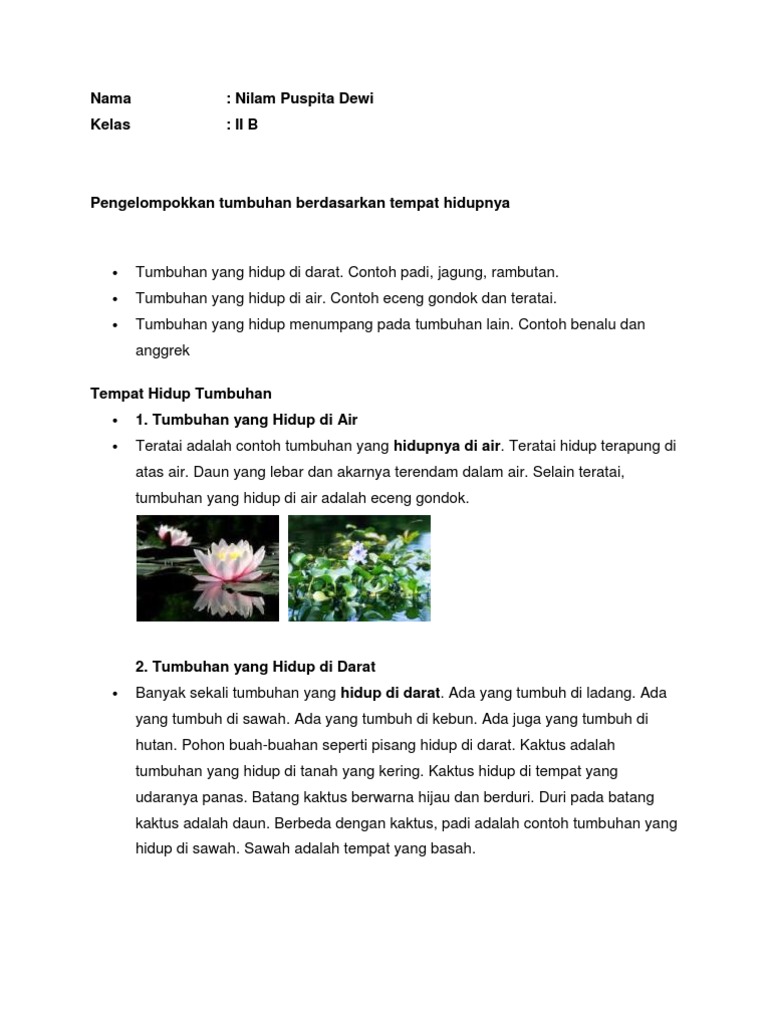 Teratai dan eceng gondok merupakan contoh tumbuhan dalam kelompok - Brainly.co.id