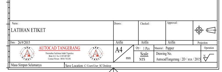 Membuat Etiket Pada Gambar Teknik - ETS WORLDS