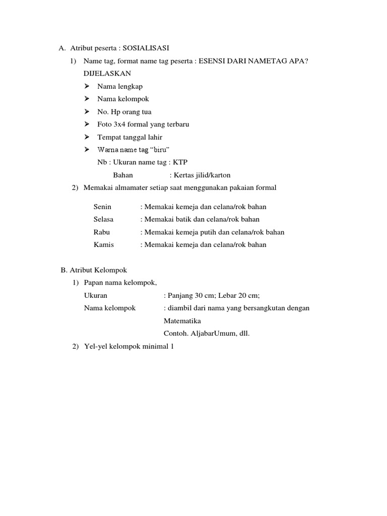 1. NAME TAG Alat Dan Bahan: Kertas karton coklat Tali KOR …blog.ub.ac.id/…/ATRIBUT-OSPEK-MABA-FAKULTAS-PETERNAKAN-UB-2013.pdf… - [PDF Document]