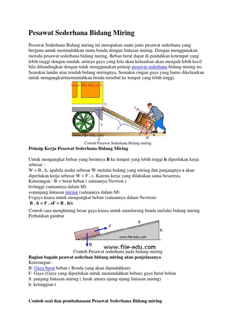 5 Contoh Soal Pesawat Sederhana Bidang Miring - Guru Bangsa