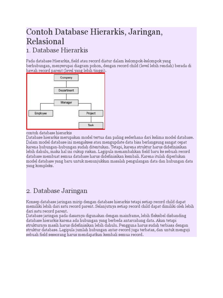 Contoh Database Hierarkis, Jaringan, Relasional