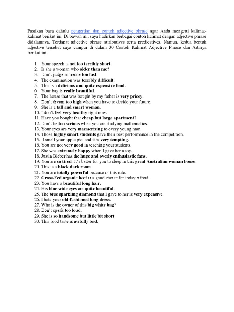 Pengertian Dan Contoh Kalimat Adjective Phrase Bahasa Inggris – cute766