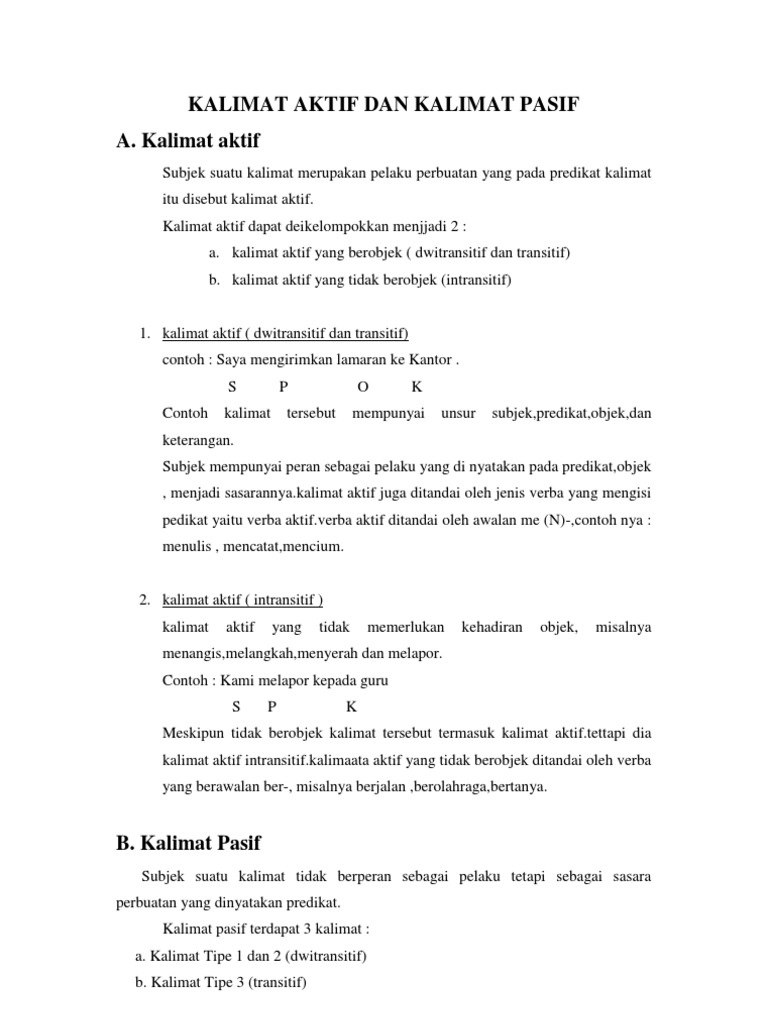 Pengertian Dan Contoh Kalimat Aktif, Transitif, Intransitif Dan Kalimat Pasif | Belajar Aktif