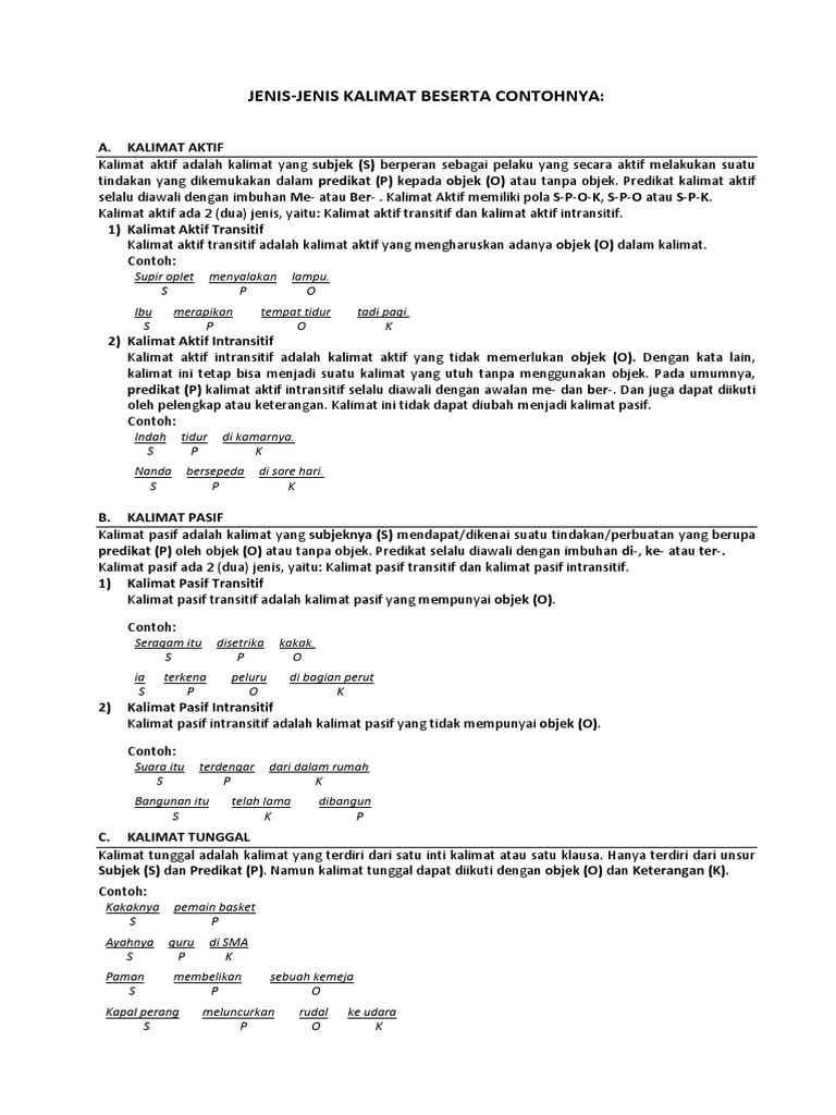 32 Teladan Kalimat Aktif Transitif Dan Intransitif Beserta Pengertian | Cara Ampuh Memahami Matematika Dengan Mudah