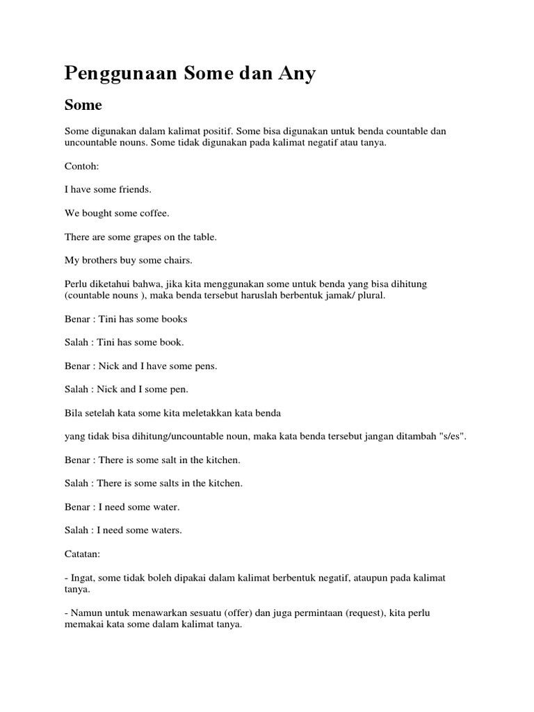 DOC) PENGGUNAAN SOME, ANY, MANY, MUCH, A LOT OF | hanibi abna - Academia.edu