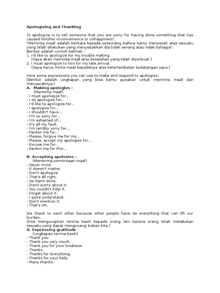 Expressing and Responding Apology Beserta Contoh Soal Terlengkap - Paja Tapuih