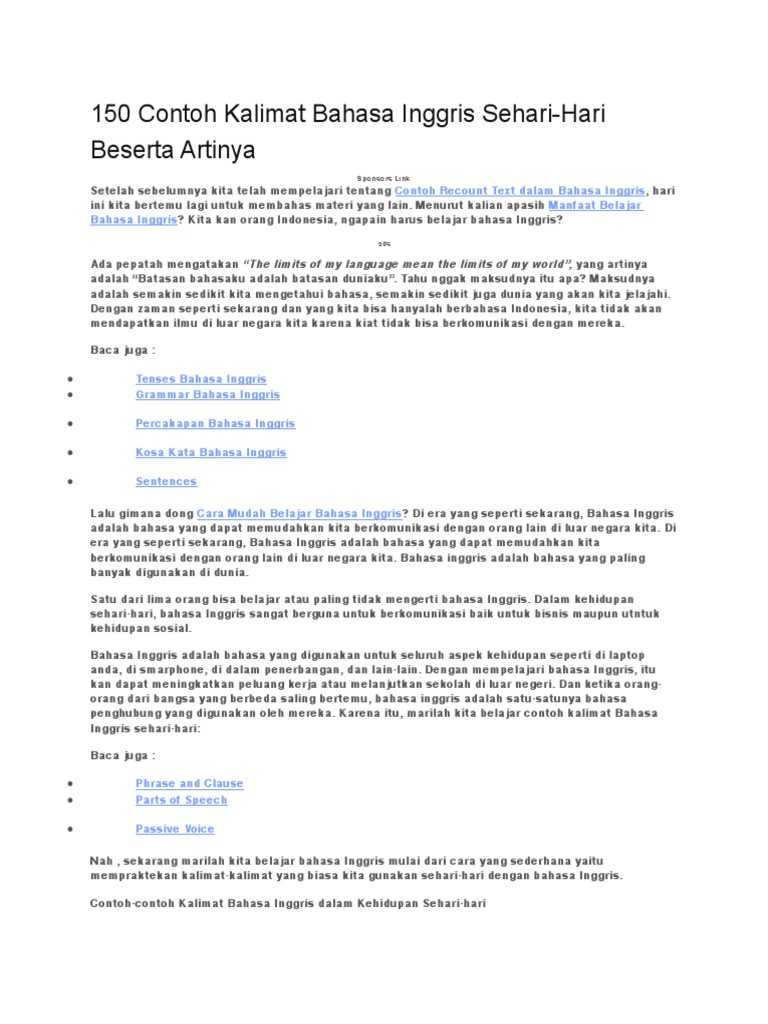 150 Contoh Kalimat Bahasa Inggris Sehari