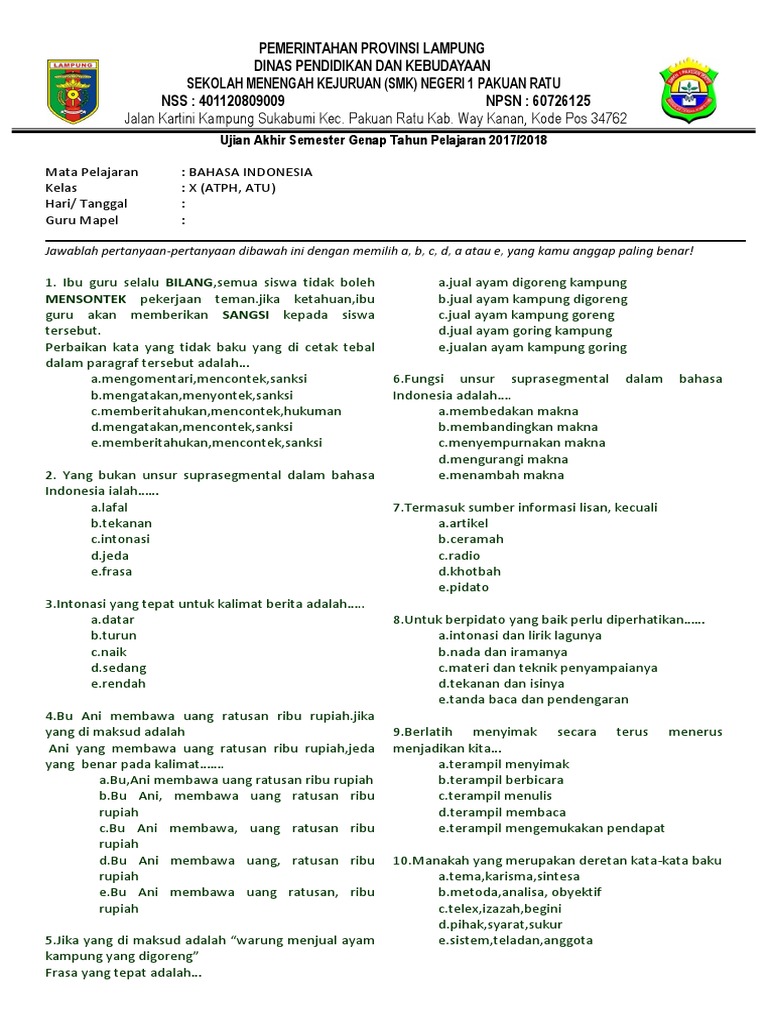 Materi bahasa indonesia un smp