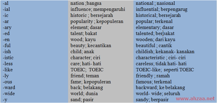 Penggunaan dan Contoh Derivatives dalam Bahasa Inggris Bagian 3; Adjectives - Ahzaa.Net