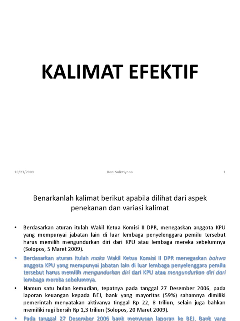 DOC) KALIMAT EFEKTIF DALAM BAHASA INDONESIA | Sidney Wijaya - Academia.edu