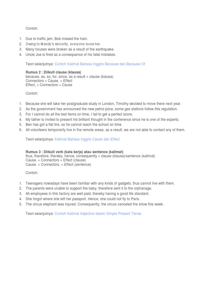 Contoh Kalimat Sebab Akibat Bhs Inggris