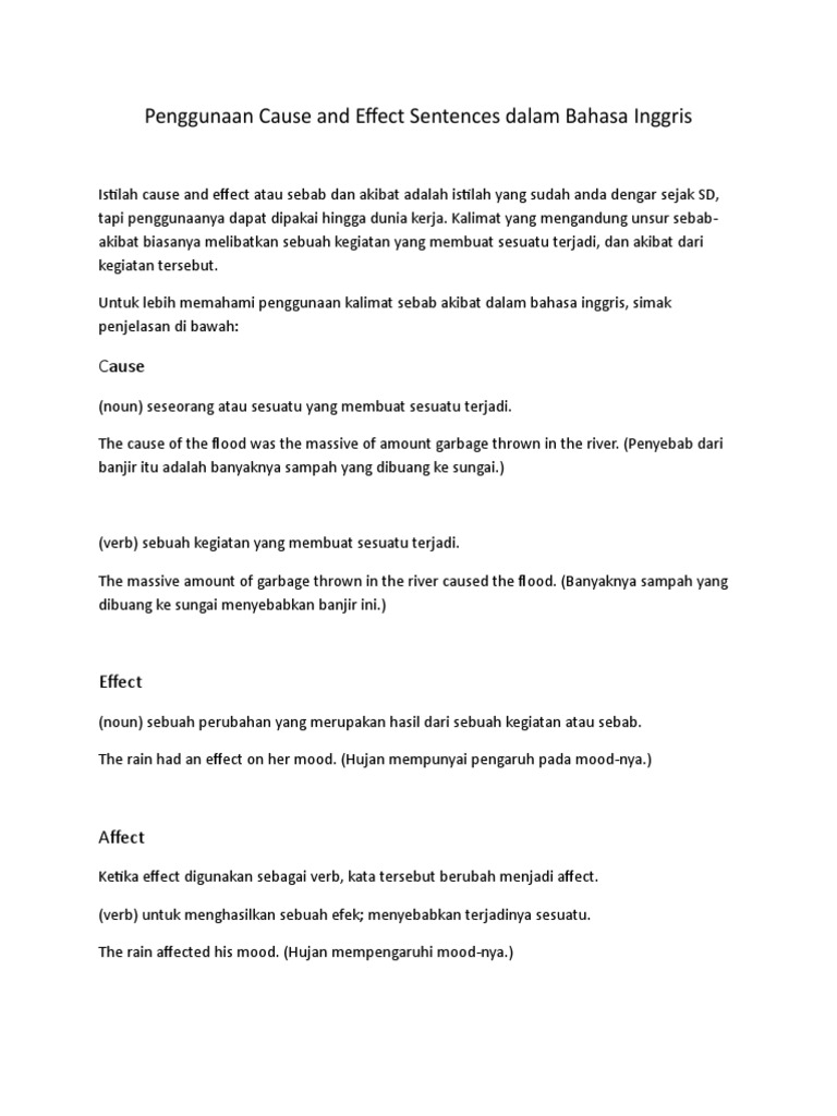 Penggunaan “Cause” dan “Effect” dalam Bahasa Inggris Halaman all - Kompasiana.com