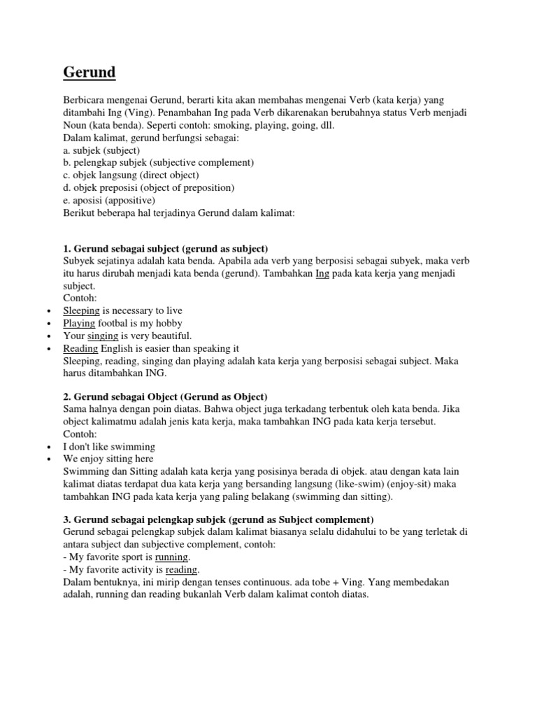 contoh kalimat Gerund | Dunia Anak dan Pendidikan