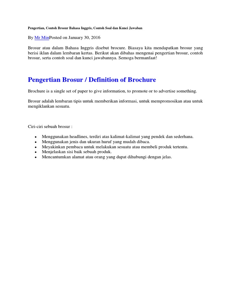 12 Contoh Brosur dalam Bahasa Inggris English Class