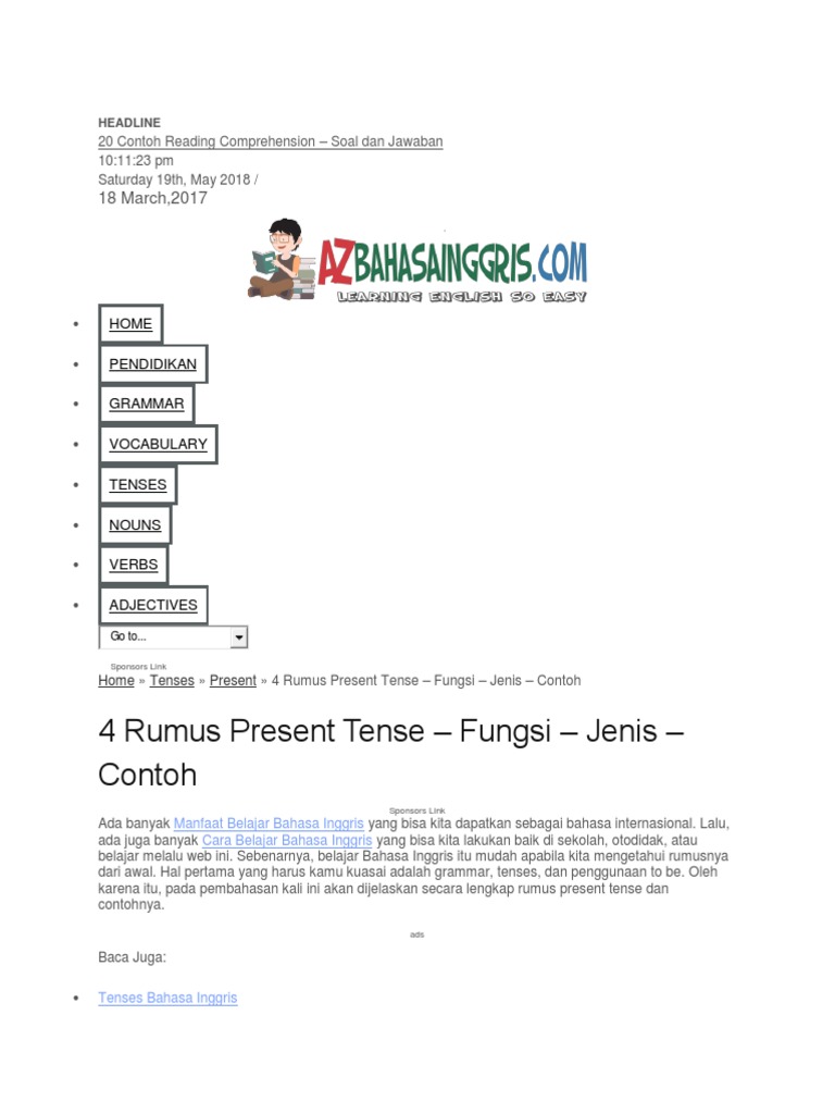 4 Rumus Present Tense Fungsi Jenis Contoh: 18 March,2017