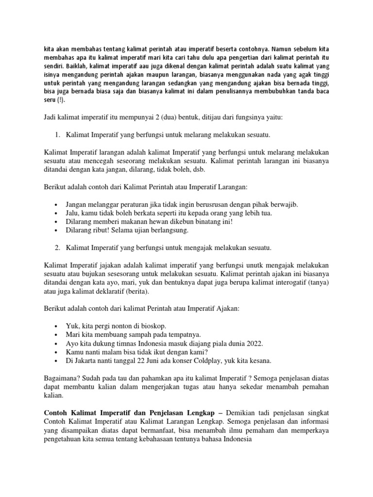 Contoh Kalimat Imperatif Dalam Teks Prosedur Kompleks - Kumpulan Contoh