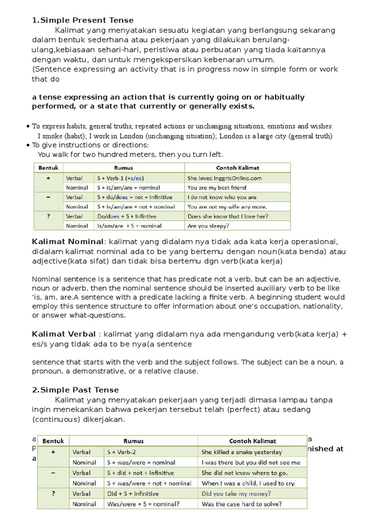 semacam ngini ya contoh kalimat simple present yg verb nya …..masing msing 5 - Brainly.co.id