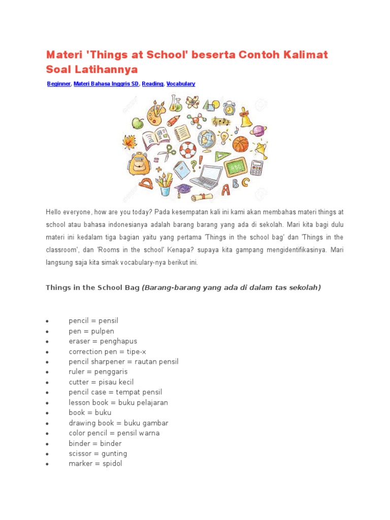 Materi ‘Things at School’ beserta Contoh Kalimat Soal Latihannya - Jagoan Bahasa Inggris