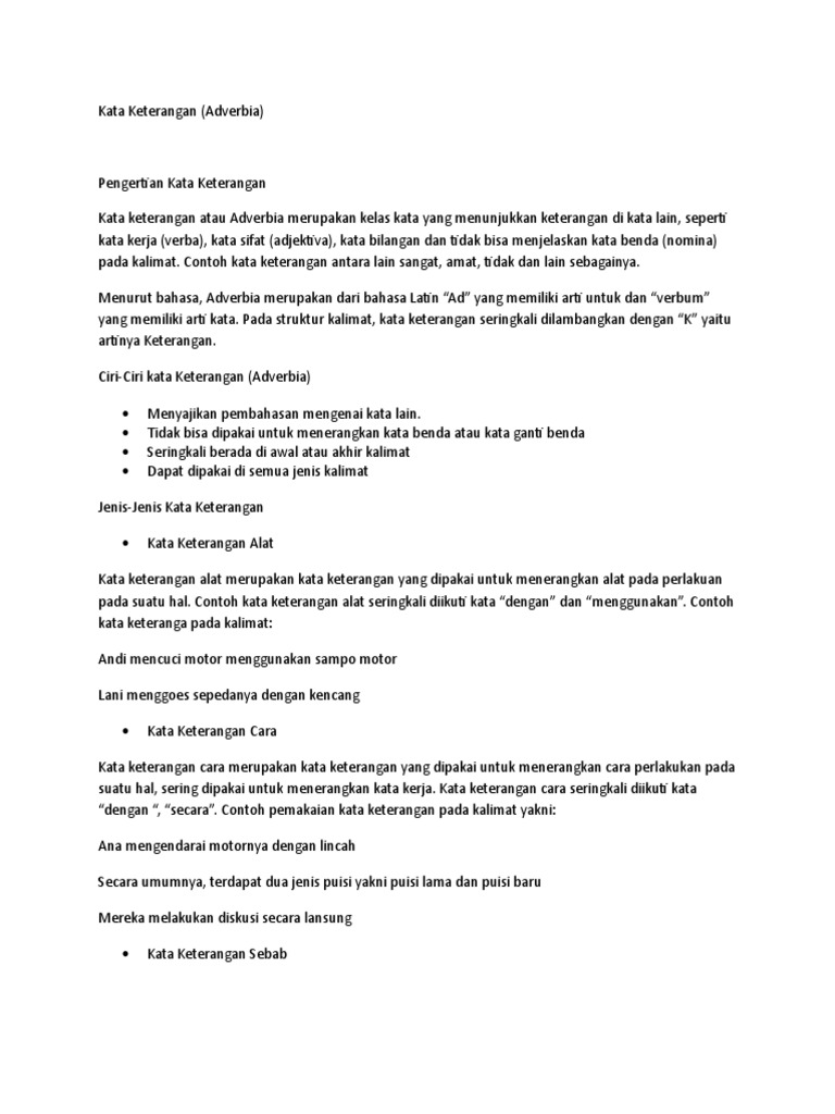 14 Jenis-Jenis Kata Keterangan dan Contohnya dalam Bahasa Indonesia - DosenBahasa.com