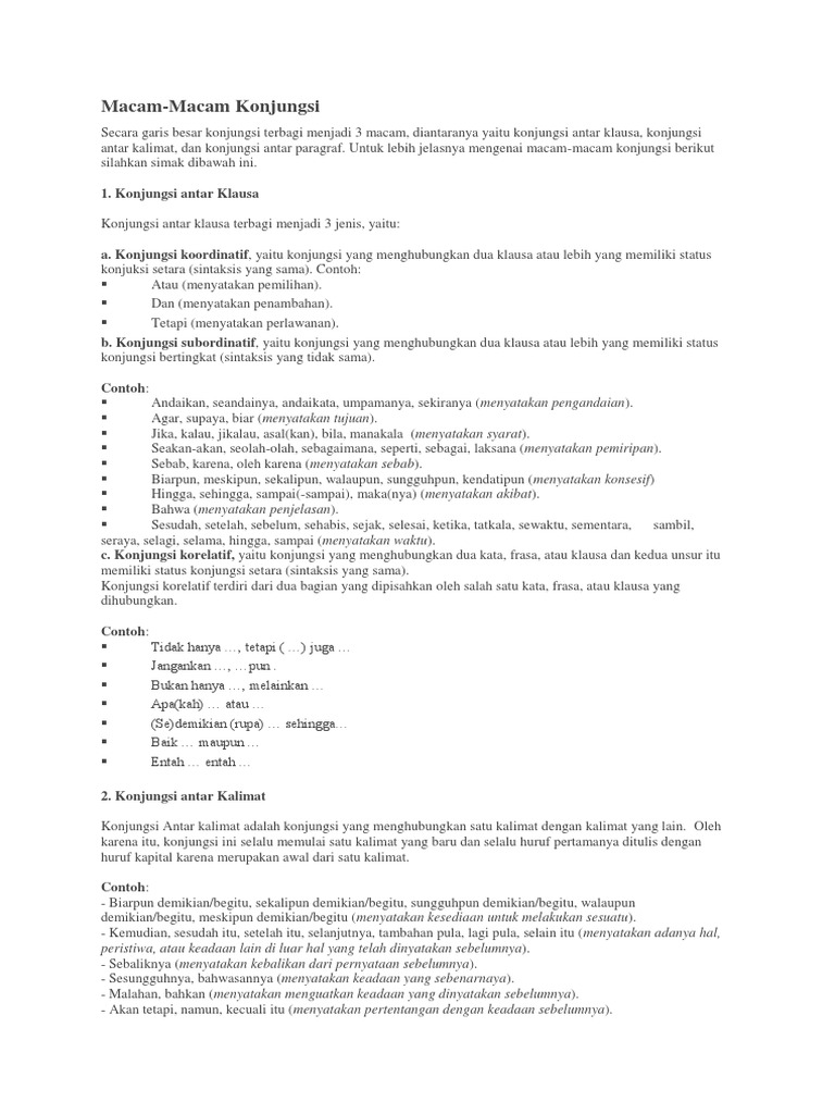DOC) Macam-Macam Konjungsi dan Contohnya | ahmad maulana - Academia.edu