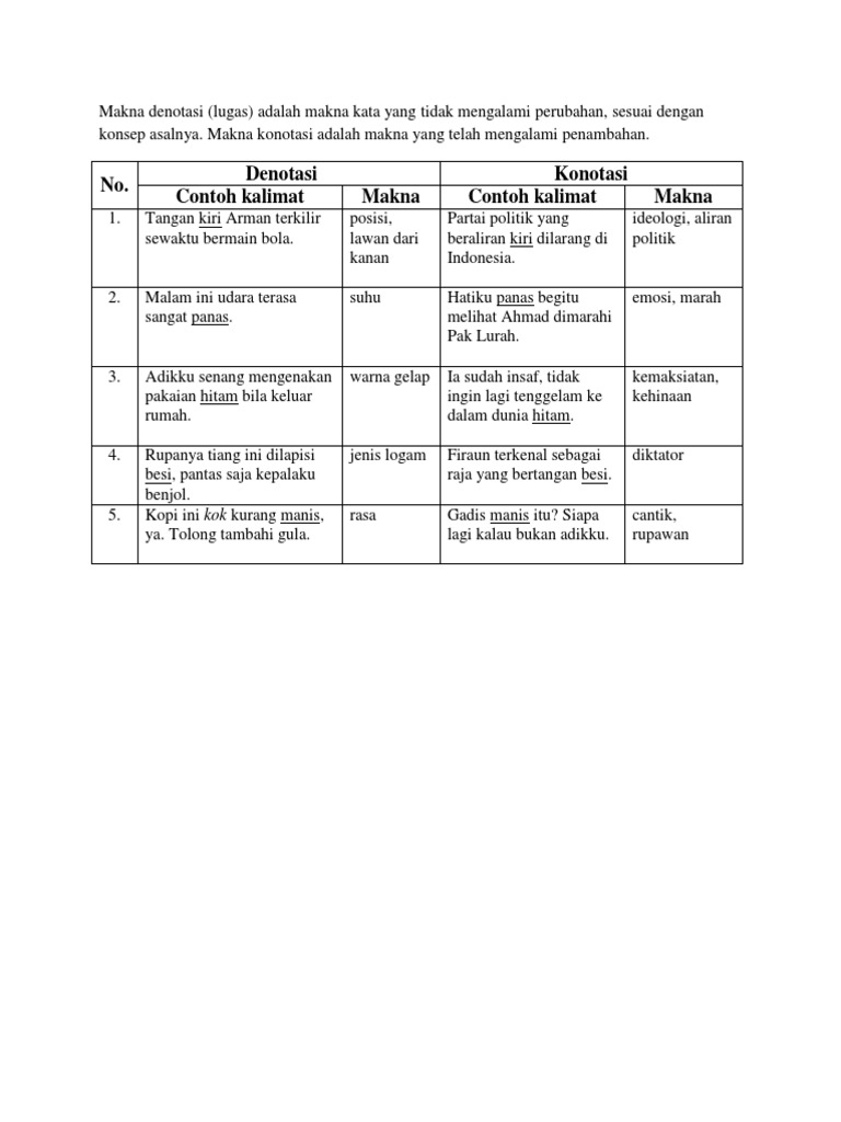 DOC) Contoh Kalimat Konotasi dan Denotasi | Bastian Lewar - Academia.edu