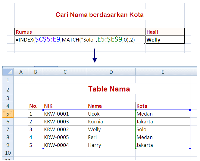 Fungsi INDEX MATCH Untuk Mengolah Data Excel - Belajar Microsoft Excel