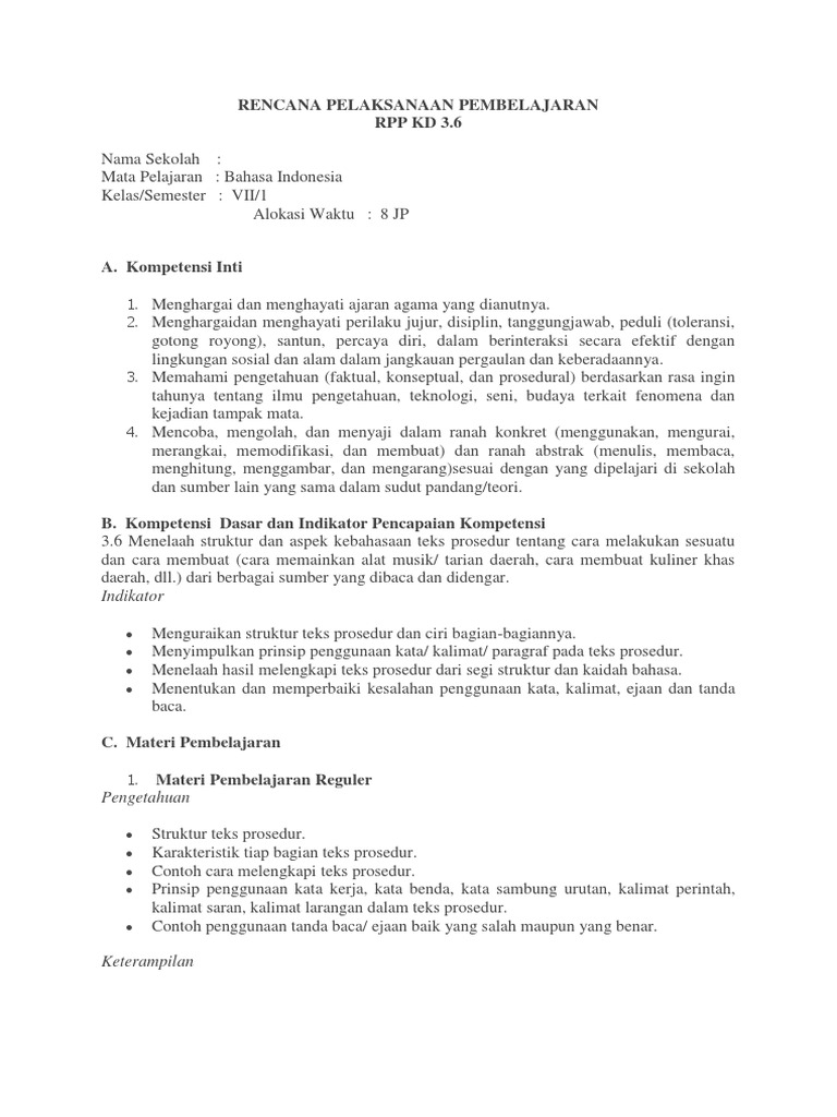 DOC) RPP BAHASA INDONESIA KELAS VII BAB 3 TEKS PROSEDUR.docx | Asisten Nur - Academia.edu