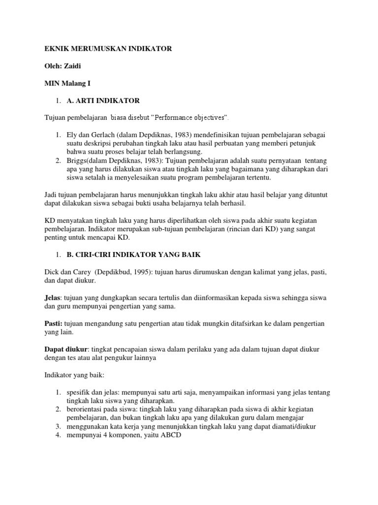 Cara Merumuskan Indikator Pada K13 Revisi Terbaru - SekolahDasar.Net