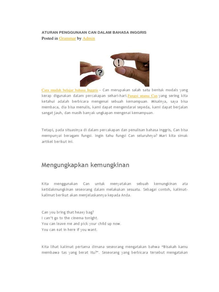 Aturan Penggunaan Can Dalam Bahasa Inggris