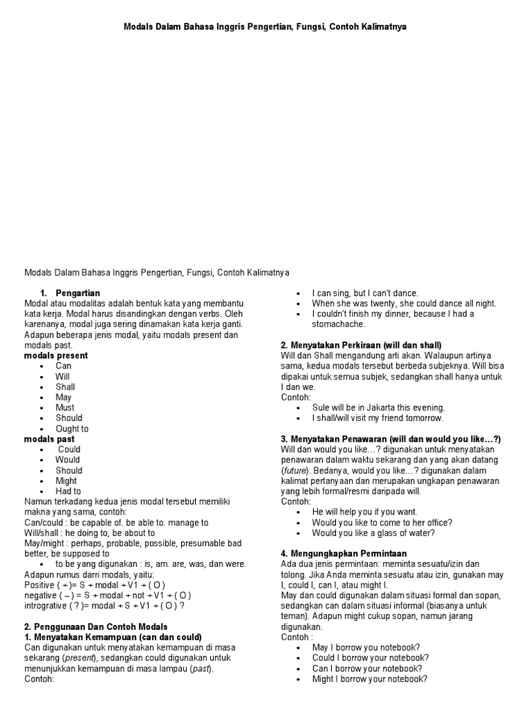 Pengertian, Fungsi, Contoh Modals Dalam Bahasa Inggris Lengkap