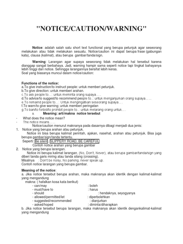 Contoh Soal Notice Caution Warning Beserta Jawabannya - Dapatkan Contoh