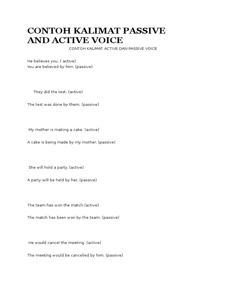 DOC) Pengertian, Rumus dan Contoh Kalimat Passive Voice Pengertian Passive Voice | Nurlina Nurdin - Academia.edu